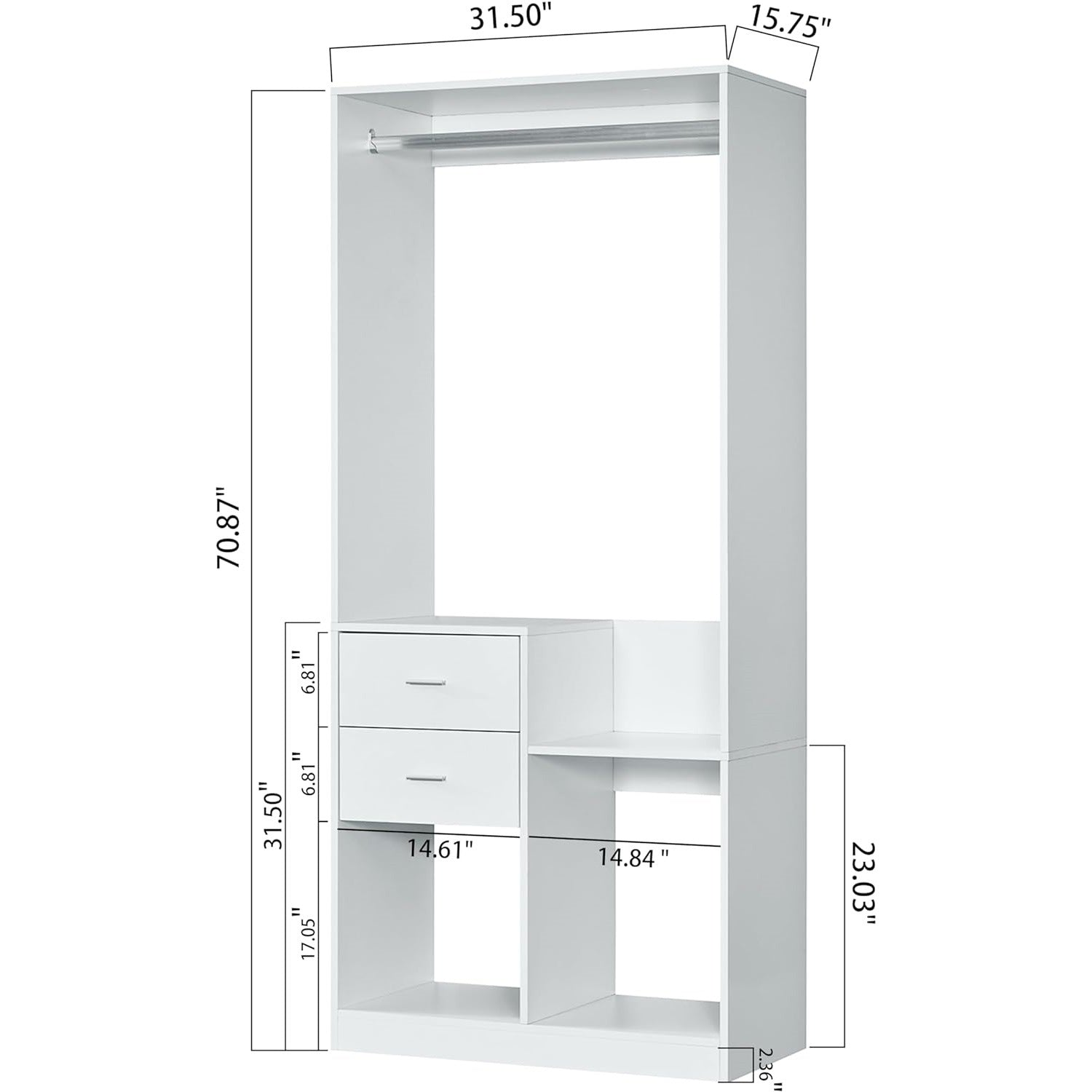 302 Freestanding Closet System 71"H Closet System with Drawers, Wooden Wardrobe Closet Organizer System with Closet Drawers, clothes organizer Clothing Racks for Hanging Clothes with Closet Shelves Wall Mounted, White